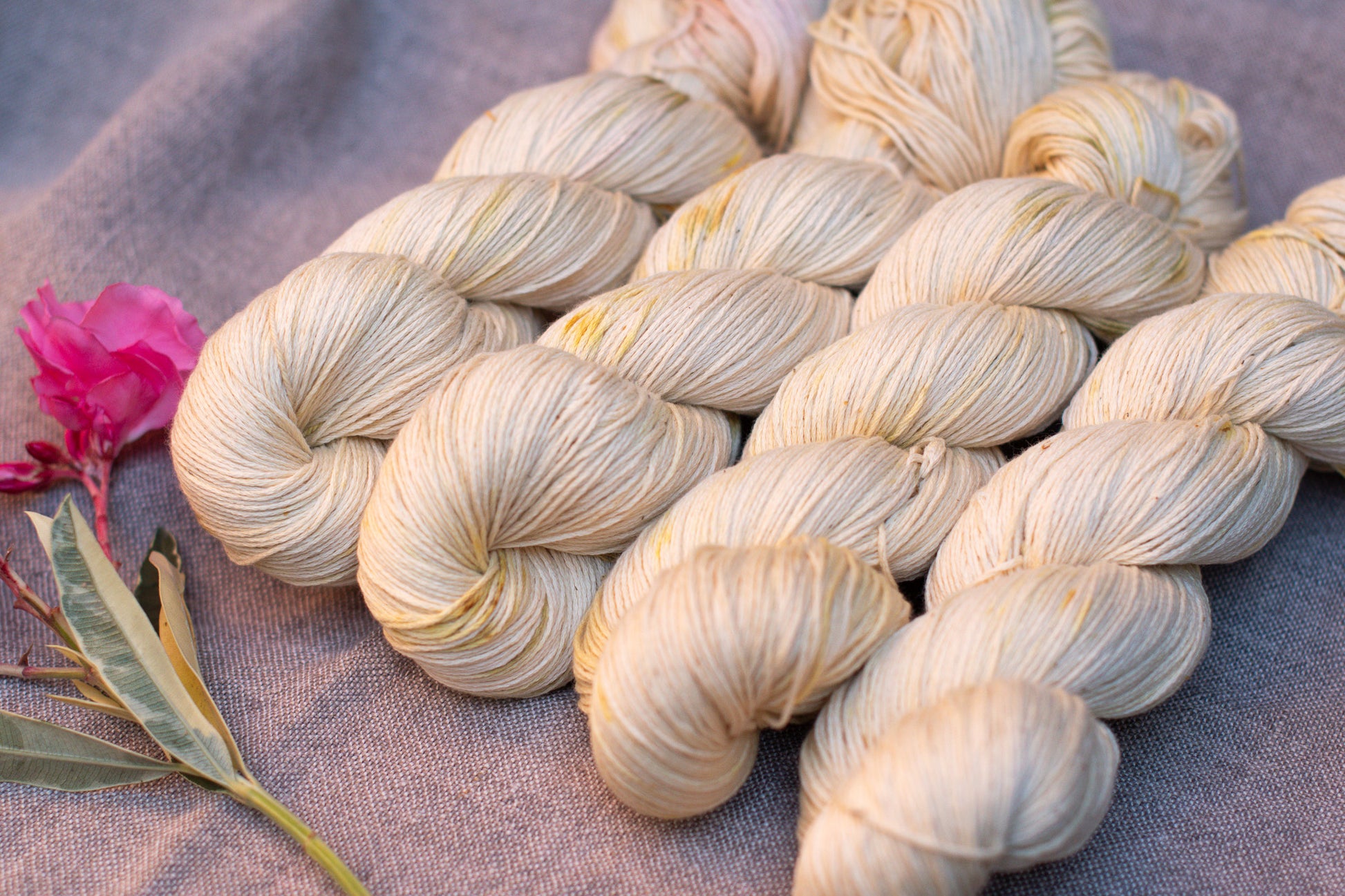 Cada madeja es teñida a mano en un proceso artesanal, utilizando elementos respetuosos con el medio ambiente y seguros para la salud. Este método pausado y meticuloso garantiza la calidad y longevidad del hilado, al mismo tiempo que aporta un toque especial: la variación natural en los matices de color, zonas ligeramente más claras y una profundidad cromática única.