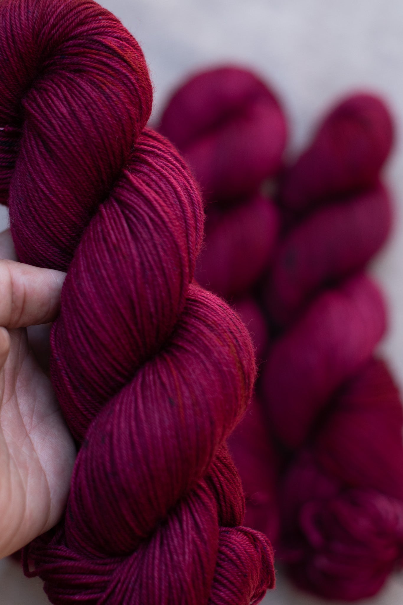 Cada madeja es teñido a mano en un proceso artesanal, utilizando elementos respetuosos con el medio ambiente y seguros para la salud. Este método pausado y meticuloso garantiza la calidad y longevidad del hilado, al mismo tiempo que aporta un toque especial: la variación natural en los matices de color, zonas ligeramente más claras, y torsiones únicas.