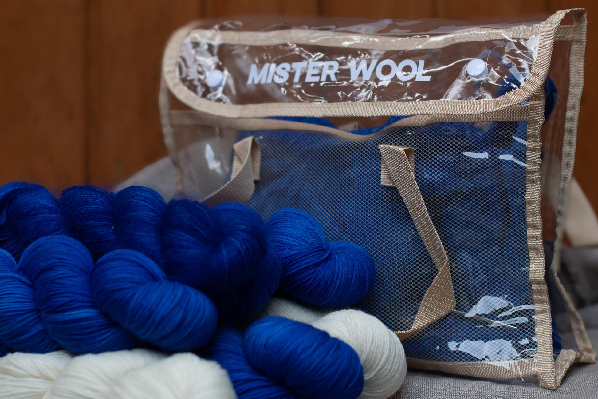 Un kit pensado para este momento del verano en que ya empezamos a soñar con la playa, las escapadas y el descanso. Azules intensos y profundos, combinados con dos madejas crudas que iluminan la paleta como espuma sobre el mar. Un contraste fresco, limpio y moderno. Este Flechazo incluye además un coqueto bolso de vinilo transparente Mister Wool, perfecto para llevar tus proyectos a cualquier parte y mostrar con orgullo lo que estás tejiendo.