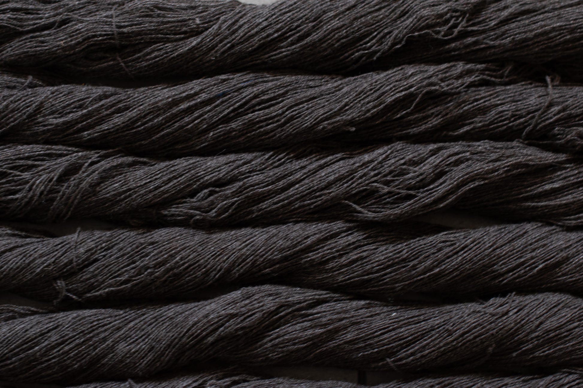 Es imposible identificar con precisión las razas. Solo tengo claro que se trata, en su mayoría, de ovejas chilenas de la Patagonia, y que en algunos casos existen mezclas con nylon, otros con algodón, que aporta un sutil efecto tweed, y otros que son 100 % lana. Hay hilados suaves y otros un poco más rústicos, pero el bloqueo marca la diferencia.